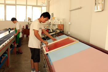 技术服务中心既是为客户提供技术服务的平台,也是对产品进行严格检测、试验的部门。中心设有绷网机、晒版机、平台印花、斜台印花、成衣印花台、进口恒温压烫机、走道烘干机、耐洗色牢度试验机等印花设备。走访期间,我看到每位技术人员不仅对产品进行严格的操作测试,同时为客户解决各类印花难题,提出应对方案。
