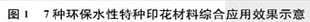 图1中的印花图案体现了我公司7种环保水性特种印花材料综合应用的效果。包括如下: