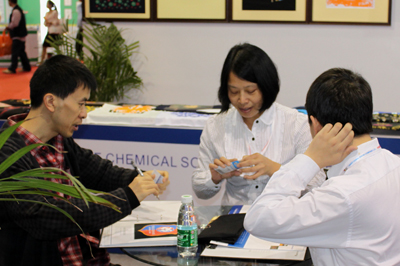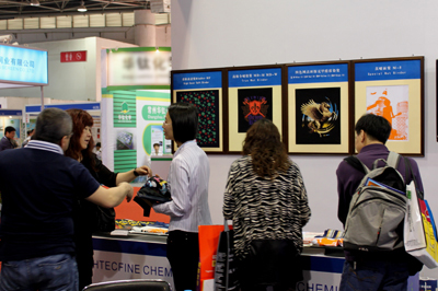 本次展会我司主要展示南理环保水性特种印花材料。在展会期间机印胶浆MP系列、环保无甲醛拔染浆NF、金属光泽浆M系列,柔软高盖浆Binder HF、高级全哑胶浆MD系列、龟裂效果浆BKL系列、竖裂效果BSL系列、高牢度PU亮光浆U-8、特别高牢度PU胶浆 SPU、隔离浆FT-11等产品倍受业内人士高度观注及高度赞赏。