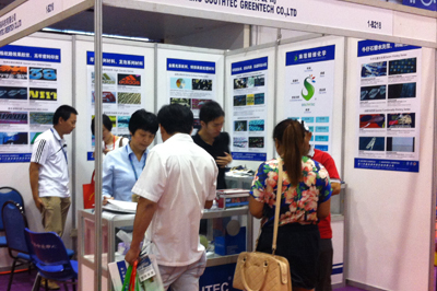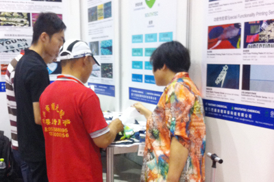 2014年6月9-11日我司参加由青岛海名国际会展有限公司在青岛主办的“2014年中国(青岛)国际纺机暨印花工业展览会”,本次展会我司主要展示南理环保水性特种印花材料。展会期间我们展示了:无甲醛环保拔染浆、拔染风格水浆系列、防冻胶浆、高级胶浆、高牢度石磨水洗浆系列、防升华打底浆、加光浆、金属光泽浆M系列、机印胶浆、特殊纹路系列、高级环保水浆、隔离浆、转印浆等产品倍受业内人士高度关注及高度赞赏。