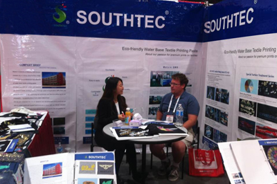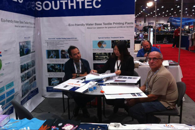 2014年10月 22 - 24日我司参加由SGIA主办在拉斯维加斯会议中心——拉斯维加斯,内华达州(Las Vegas Convention Center - Las Vegas, Nevada)举办的SGIA展(SGIA Expo)。本次展会我司主要展示南理环保水性特种印花材料。展会期间我们展示了:ECO-S3系列产品、特殊纹路材料系列、金属光泽浆M系列、高级胶浆、高牢度胶浆、功能性胶浆、高牢度石磨水洗浆系列、防升华打底浆、加光浆、哑光胶浆、高牢度转印材料系列、隔离浆、发泡材料系列,厚版材料系列 、等产品倍受海外业内人士高度关注及高度赞赏。