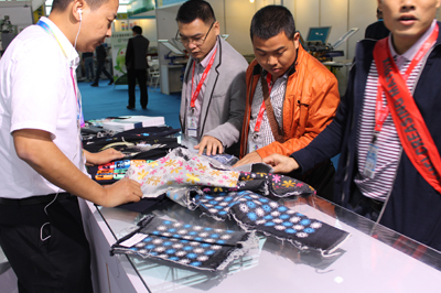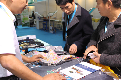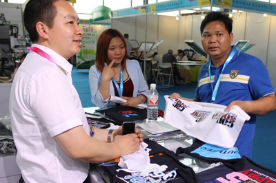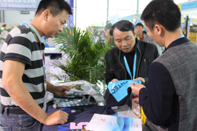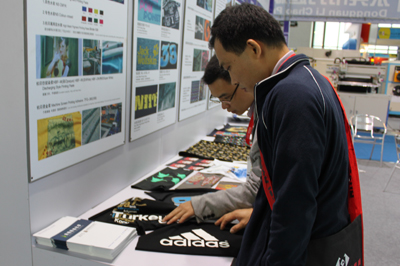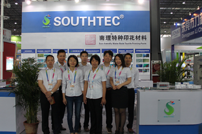 2015年04月07-12日我司参加由中国丝网印刷行业协会在中国广东现代国际展览中心3F馆(东莞)主办的“第32届中国(广东)国际印刷技术展览会&中国国际丝网印刷及数字技术展览会”,本次展会我司主要展示南理特种印花材料。展会期间我们展示了:南理机印材料 系列、数码效果胶浆系列、防冻胶浆、高级胶浆、高牢度石磨水洗浆系列、防升华打底浆、加光浆、哑光胶浆系列、金属光泽浆M系列、特殊纹路效果系列、高级环保水浆、隔离浆、高牢度转印浆,等产品倍受海内外业内人士高度关注及高度赞赏。