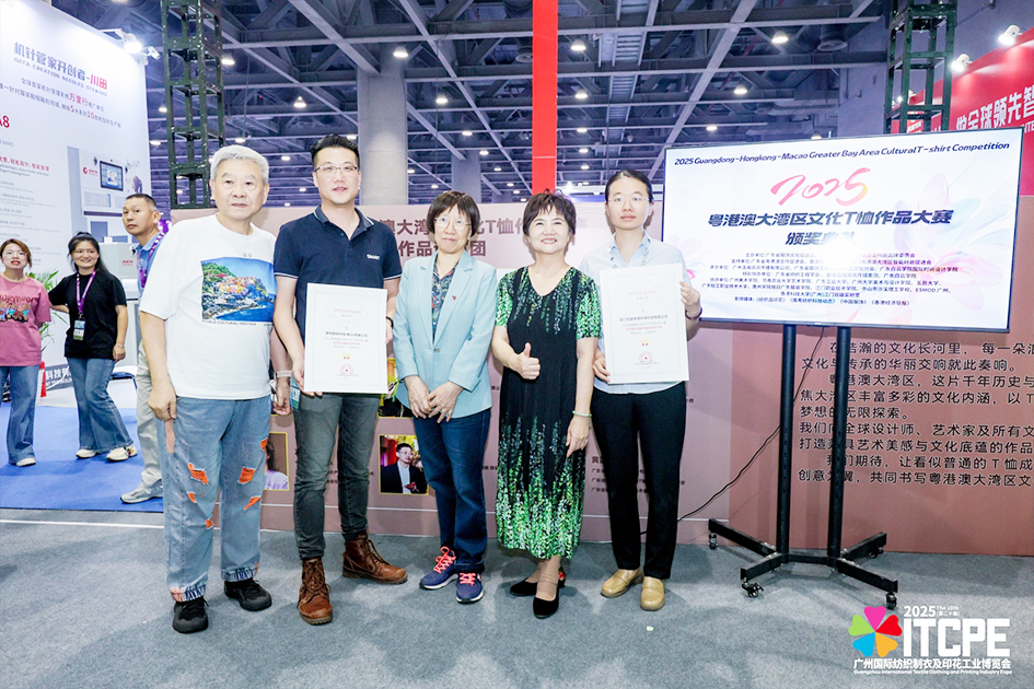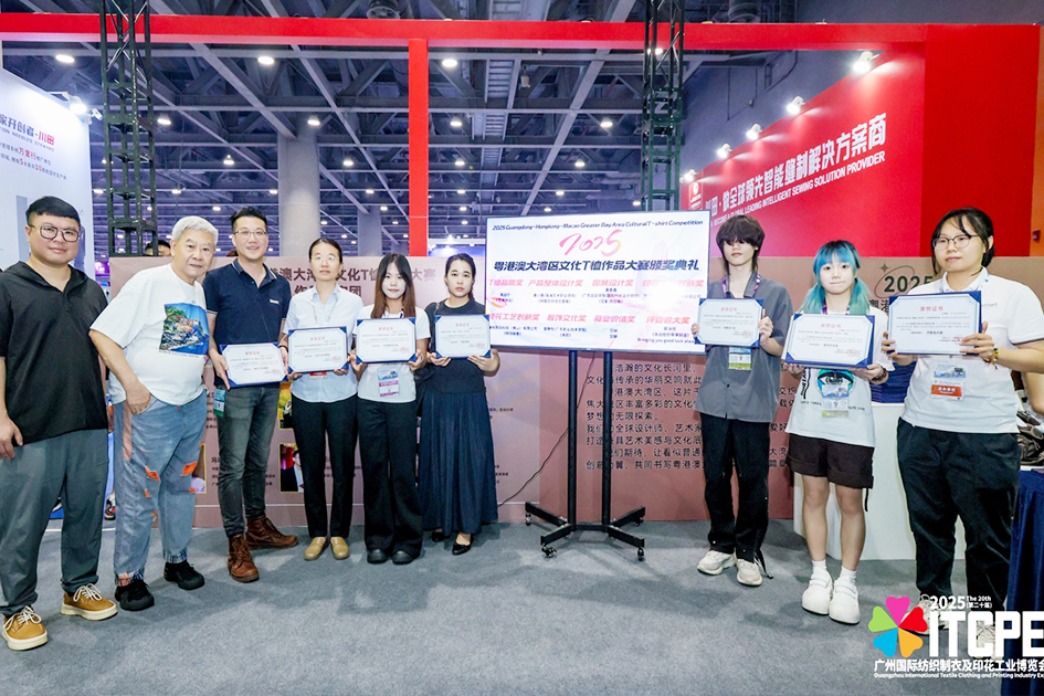 5月19日,在广州保利世贸博览馆,广州纺博会1号馆T1040展位隆重举行了“2025粤港澳大湾区文化T恤作品大赛”的获奖作品展示及颁奖典礼。“2025粤港澳大湾区文化T恤作品大赛”活动由广东省服饰文化促进会与广东省粤港澳合作促进会时尚品牌委员会主办,广东省粤港澳合作促进会指导,广东省纺织工程学会、香港浩瀚咨询传播集团、广东白云学院特别协办,广州浩瀚资讯传播有限公司、广东省服饰文化促进会T恤文化分会、广东白云学院国际时尚设计学院联合承办。本活动自发出大赛通知后得到了品牌企业、专业院校、印染企业、专业机构、设计师等时尚行业人士的高度关注。共收到211件参赛作品,经过初审54件作品入围,终审获奖作品共37件。