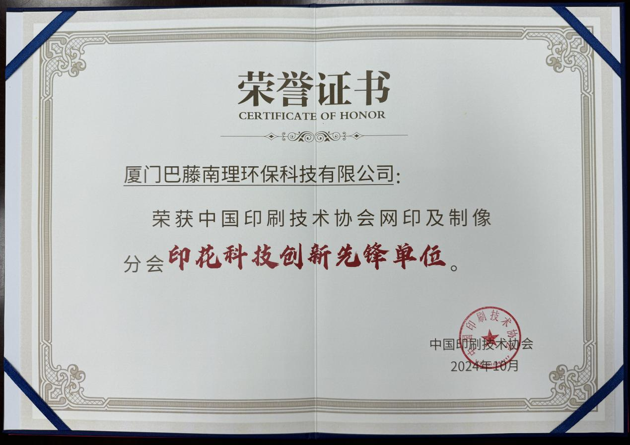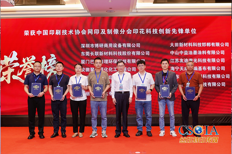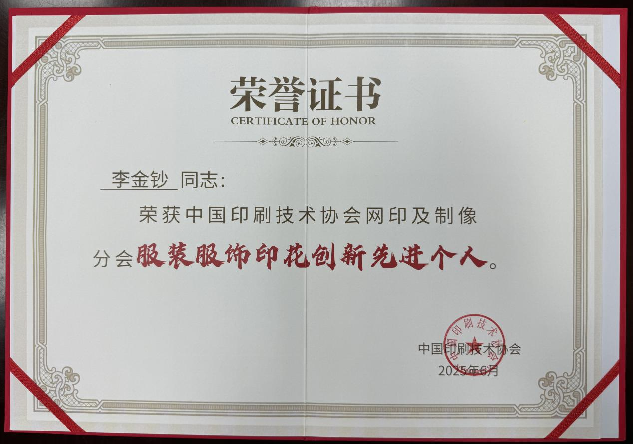 大会期间,网印分会为积极奋战在生产和科研一线,做出突出贡献的会员单位和个人版发了奖项。巴藤南理公司荣获“中国印协网印及制像分会-印花科技创新先锋单位”,李金钞总经理荣获“中国印协网印及制像分会-服装服饰印花创新先进个人”。